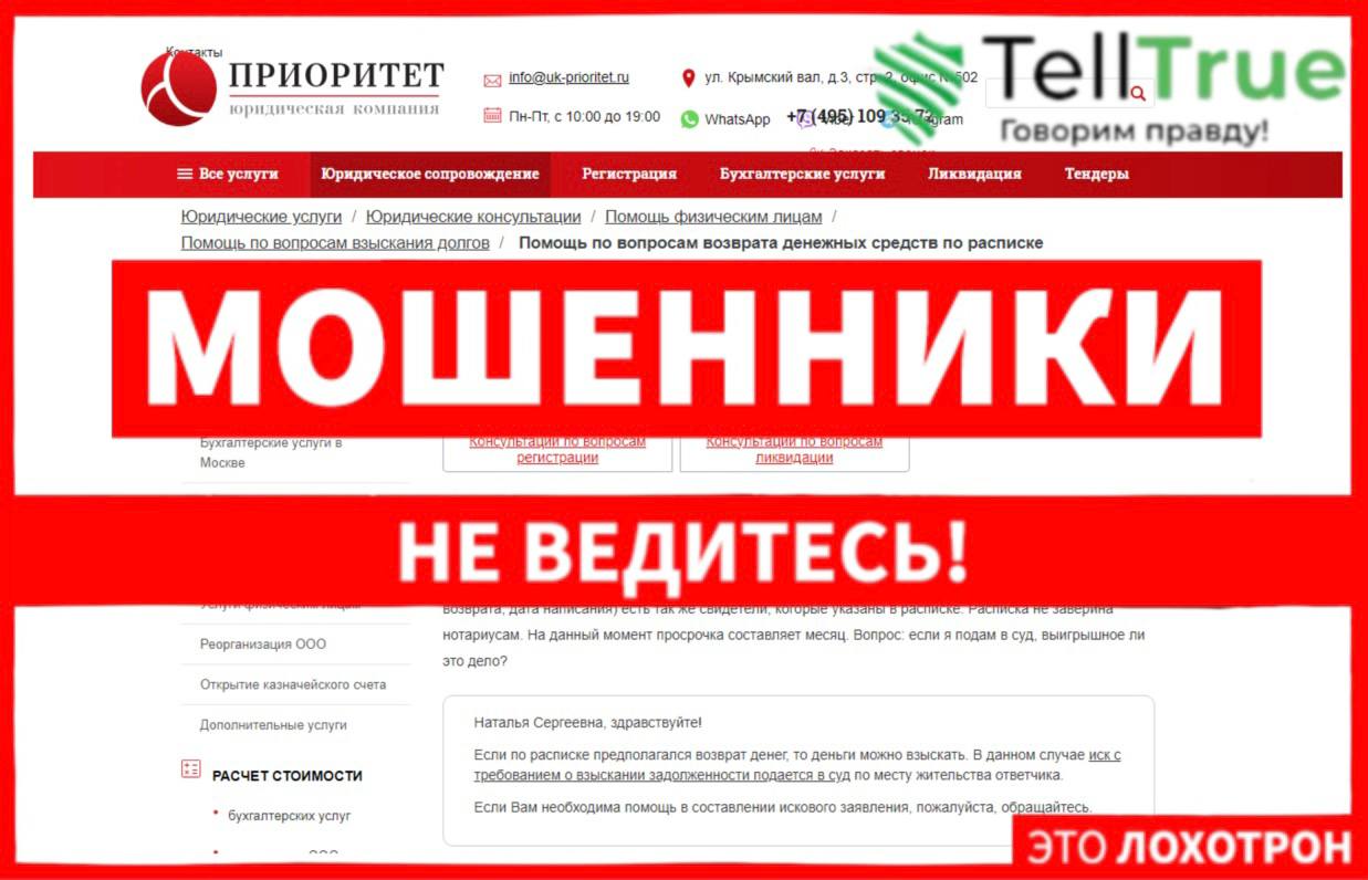 ЮРИДИЧЕСКАЯ КОМПАНИЯ “Приоритет” (https://www.uk-prioritet.ru/) правда о лжеюристах!