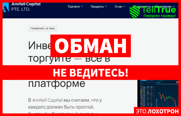 Amitell Capital PTE LTD – это пример брокерского проекта, что был создан для обмана обычных людей. Таких лохотронов, как этот, с каждым днем появляется все больше. Сайт пытаются презентовать, как престижную брокерскую платформу. На самом деле он существует для обмана.
