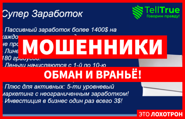 Проведенный полностью и в деталях обзор Супер Заработок (syperzarabotok.proinbiz.ru) дает четко понять, что перед нами проект, предлагающий зарабатывать приличные средства в пассивном режиме....