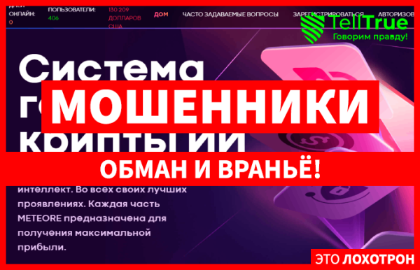 Детальный обзор Meteore (meteore.net) четко показывает, что перед нами хайп, предлагающий всем желающим получать прибыль, используя возможности инвестирования в криптовалюту и искусственного интеллекта....