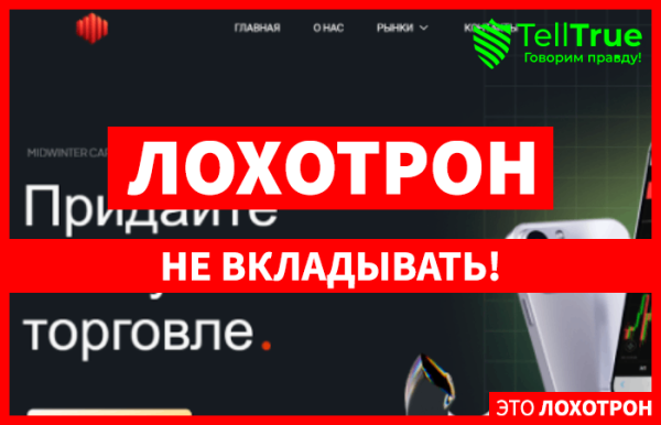 Автор: Евгений Антропов05.03.2024Создатели сайта Midwinter Capital Limited заманивают к себе пользователей обещаниями о большом легком доходе. Однако судя по отзывам от бывших клиентов этой компании,...