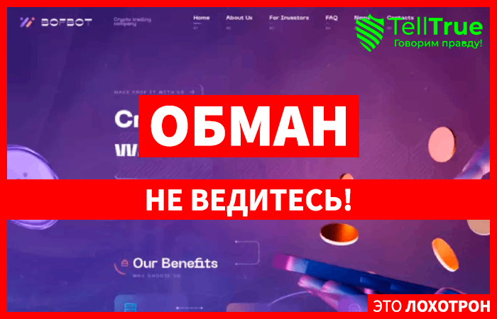 Выполненный детально и внимательно обзор Bofbot Limited (bofbot.com) показывает, что перед нами проект, предлагающий пользователям зарабатывать на инвестициях. Пользователей уверяют, что перед ними надежная и проверенная компания, но в реальности все далеко не так.