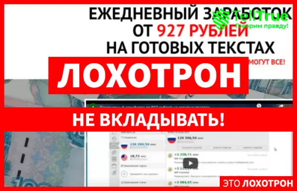Детальный обзор онлайн платформы ежедневный заработок от 927 рублей на готовых текстах (biznessmodel.ru) показывает, что проект был создан для людей, желающих зарабатывать хорошие...