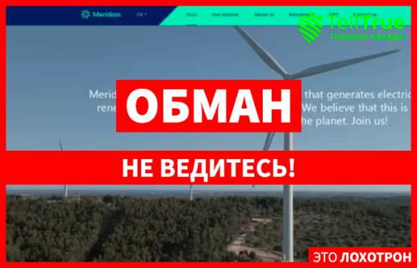 Автор: Евгений Антропов21.07.2023Полный обзор Meridian Limited (meridian.investments) показывает, что перед нами компания, работающая в сфере зеленой энергетики. Пользователям предлагают инвестировать средства в проект, что якобы...