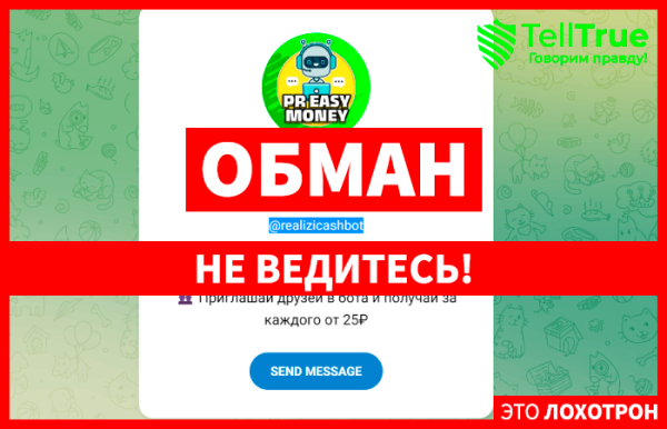 Админ мошенник @realizicashbot засветился уже ни на одном боте, где якобы пользователи зарабатывают легкие деньги, выполняя простые задания. Таких ботов было создано очень...