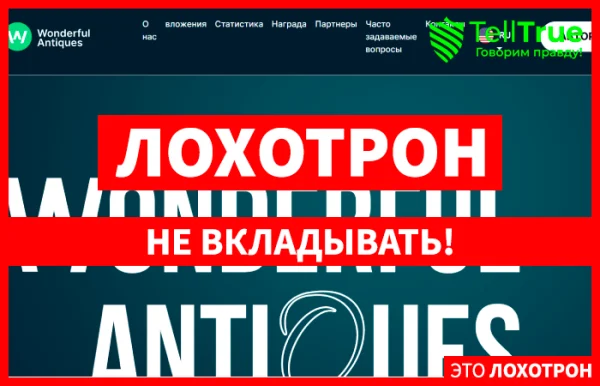 Автор: Евгений Антропов07.06.2023Полный обзор Wonderful Antiques (wontiq.com) показывает, что перед нами проект, предлагающий зарабатывать на инвестициях. На сайте компании пишут, что работает она полностью официально,...