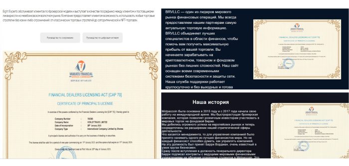 Одной из лжеброкерских организаций с поддельной лицензией Вануату является и контора Eight Experts. Фирма позиционирует себя в роли престижного, проверенного брокера из Великобритании, но это является наглым обманом и не более того. Сайт мошенников был зарегистрирован 70 дней назад, реальной прописки, как и лицензии компания не имеет.