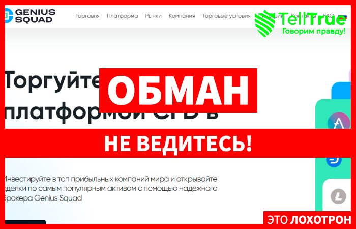 Genius Squad – это пример брокера жулика, что был создан для выкачивания средств с людей. Запустили данную организацию совсем недавно и в сети она имеет точных копий массу, хотя выдают брокера за авторитетного, надежного и престижного. Эти мошенники просто сочинили красивую сказку, чтобы выманивать средства с населения, чем они успешно и занимаются.