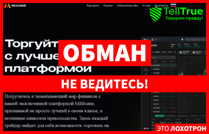 О Mililoane отзывы являются негативными. Таких комментариев от клиентов следовало ожидать. Мошенники разыгрывают перед людьми спектакль на торговом липовом терминале. Пока это выгодно, а потом кидают и перестают выходить на связь. От таких действий жуликов пострадали уже многие пользователи, потеряв свои средства. Именно поэтому стоит быть осторожными.