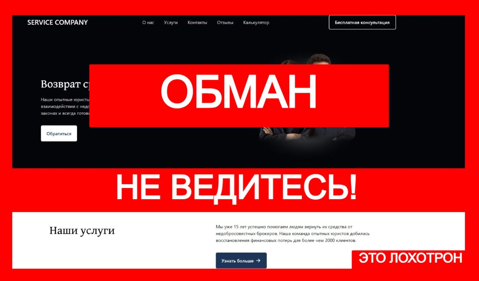 Мошенники не перестают придумывать новые схемы и прикрываться громкими именами, пытаясь обмануть людей, нуждающихся в помощи. Сегодняшний герой обзора – Service Company. Эта платформа называет себя юридической фирмой, обещает решить любые правовые вопросы клиентов, но на деле не может предложить ничего, кроме пустых обещаний.