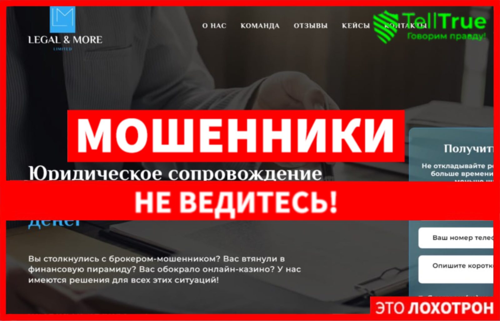 Legal&More зарегистрированы на Кипре, заявляет, что они специализируются в вопросах возврата средств и защиты прав инвесторов. Однако, существует множество жалоб от клиентов, которые утверждают, что компания обманывает и выманивает деньги, предоставляя лишь видимость деятельности.
